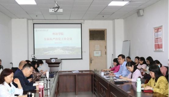 领导班子、全体教师参加会议,会议由党委书记庞亚宾主持。