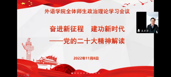 庞亚宾在总结中谈到,本次专题讲座恰逢其时,樊金山副教授的报告既有理论深度又有现实厚度,传递的思想令人深受启发。针对之后学院师生关于党的二十大精神的学习提出几点要求:要深刻领悟“两个确立”的决定性意义,增强“四个意识”、坚定“四个自信”、做到“两个维护”,切实把思想统一到党的二十大精神上来,把力量凝聚到党的二十大确定的各项任务上来;要在全面学习上下工夫,全面把握习近平新时代中国特色社会主义思想的世界观、方法论和贯穿其中的立场观点方法,全面把握党的二十大作出的各项战略部署,增强贯彻落实的自觉性和坚定性;教师要坚持立德树人,将线上与线下、课上与课下、学校与经济社会发展需求相结合,更好地助力青年学生成长成才,为科教兴国、人才强国贡献智慧和力量;学生要进一步加深对党的二十大精神的认识和理解,坚定不移听党话、跟党走,锤炼自身本领,知行合一,为实现中华民族伟大复兴而接续奋斗。最后,他强调,学习宣传贯彻党的二十大精神是当前和今后一个时期的首要政治任务。各党支部要切实提高政治站位,充分认识学习宣传贯彻党的二十大精神的重大意义,持续兴起学习宣传贯彻热潮。