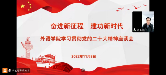 讲座结束后,学院组织开展了学习贯彻党的二十大精神座谈会,座谈会由庞亚宾主持。
