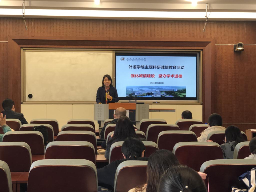 副院长朱文晓首先向全体教师传达了河南省卫生健康委员会及学校相关文件精神,详细解读了科研诚信的不良行为及处理办法,并结合学术不端的真实案例,使老师们对加强科研诚信意识,自觉遵守科研诚信规则有了更为全面深入的了解。同时她强调切实做到“4个全覆盖”(部门、教研室全覆盖,教学、科研全覆盖,和重要文件、制度的全覆盖),确保龙腾小说